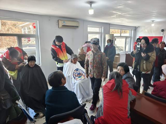 “光影留痕”与“云端团聚”环节成为活动的两大亮点。志愿者们精心布置拍摄场景,不仅为老人们拍摄证件照、生活照,还特意搭建了天安门背景墙,圆了不少老人的心愿。“以前总梦想着能和天安门合个影,没想到今天在家门口就实现了!”大爷、大娘身着整洁衣物,在背景墙前挺直腰板,脸上洋溢着幸福的笑容,两台高速运转的打印机为老人们打出一张张照片,志愿者用镜头定格下这一珍贵瞬间。直播镜头前,老人们对着屏幕向远方子女挥手问好,诉说思念与近况,外地游子们在线上送上祝福,隔空传递的牵挂让现场更添温情。此外,爱心理发区的志愿者熟练地为老人们修剪头发,让老人们以清爽利落的形象迎接冬日,活动尾声,全村老人欢聚一堂拍摄“全村福”,快门按下的瞬间,一张张笑脸成为乡村最温暖的记忆,现场不时传来阵阵欢声笑语。