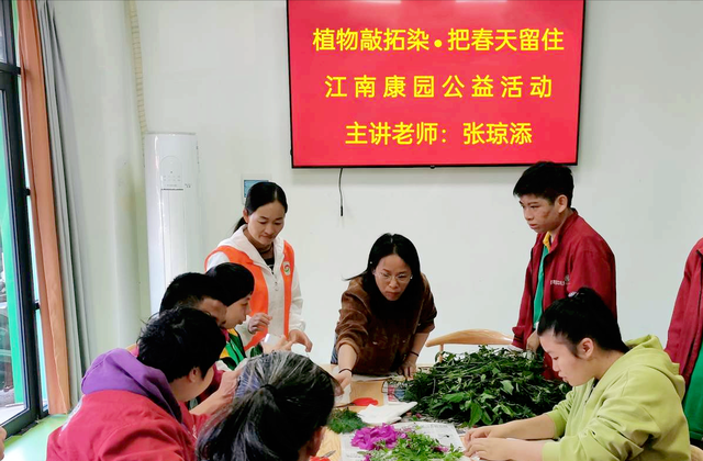 12月4日下午,江南康园开展“植物敲拓染·把春天留住”公益活动,邀请专业手工老师张老师现场授课,带领会员走进自然美学的世界,用传统工艺定格草木芳华,丰富残障会员的精神文化生活。