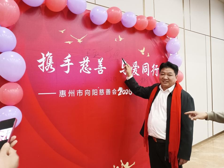 感恩惠州市惠城区:刘红光主席、惠州市消防局戴梦元、惠州市交警支队副队长:陈湘依、惠州市生态环境局李乙生李科、感恩广东惠州承康养老护理中心董事长 广东皇庭爱悦国际月子中心董事长 惠州市佛教协会名誉会长 惠州市惠城区侨联名誉主席 惠州市儿童联合会主席:钟世亮先生、惠州市湖南商会副会长:邓小辉、惠州市湖南安乡商会会长:尹光荣、惠州市安乡商会执行会长:刘辉、深圳市嗨乐医疗科技有限公司董事长:李良、中国银行惠州市分行保卫科主任:易康康、龙丰退伍军人协会会长:张日升、湘潭商会会长:彭绍兴、惠州市狼帮江秋林、惠州市蛟龙救援队会长:郭成权、惠州市湖南新宁商会会长:李兴安、惠州市克林声学有限公司董事长:李兴鹏、桃园慈善会副会长:刘建军、惠州市博罗县罗阳镇星岸城居委会:廖志鹏、惠州市河南岸居委会:辛淑明、惠州市万家欢总经理:曾强、杰诚保安服务公司:刘金刚、广东省深圳市贸易协会会长:陈庆忠; 同时感恩惠州市向阳慈善会会长、副会长、顾问、理事、监事、队长各位志愿者们的到来。