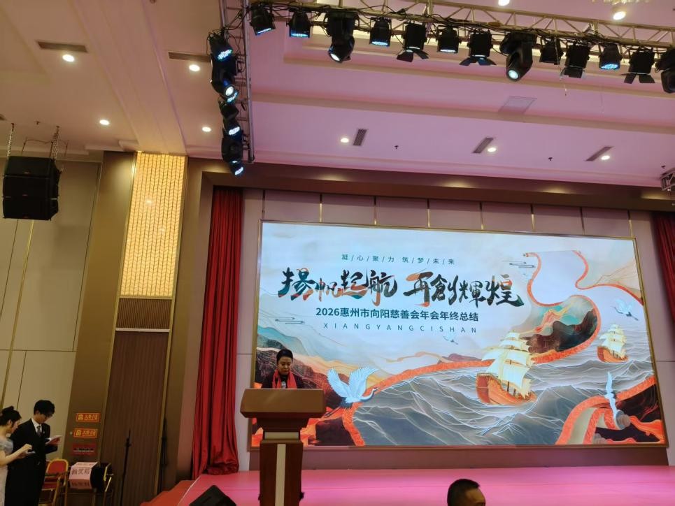 2026年1月25日惠州市向阳慈善会2026年“同心向阳·感恩同行”年度盛典在惠州市惠城区玉州大酒店举行。
