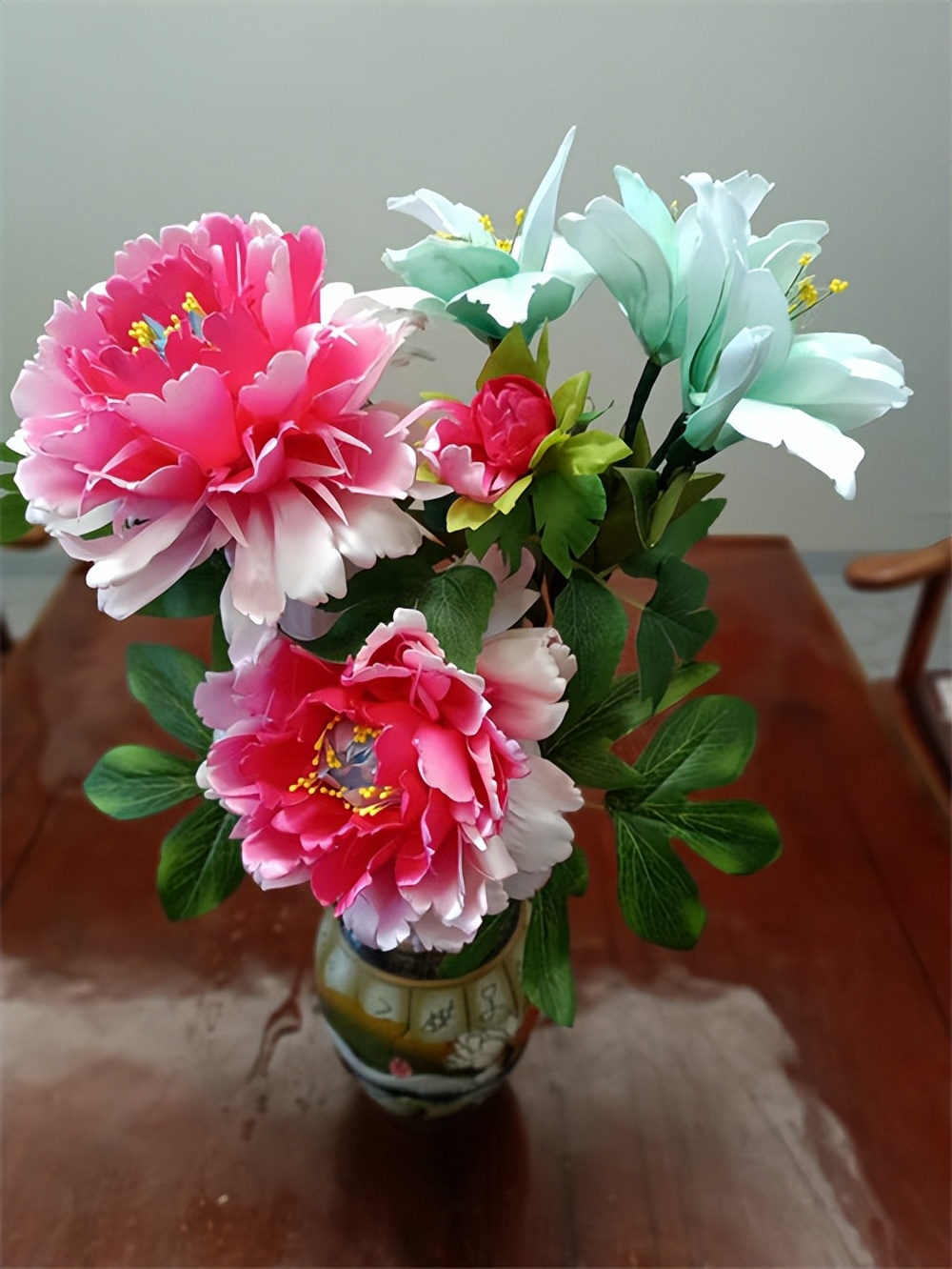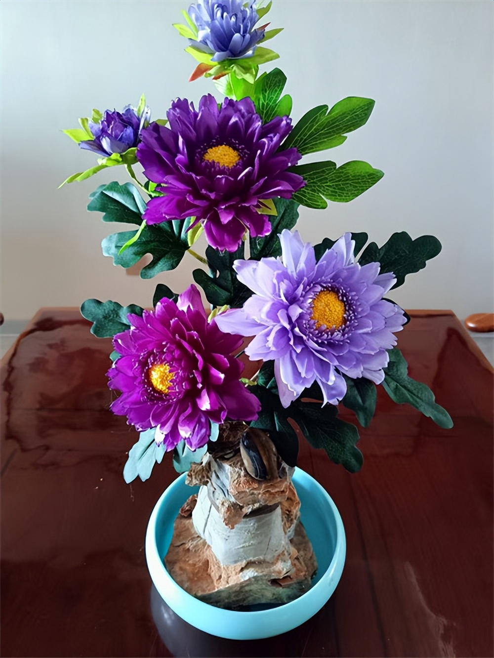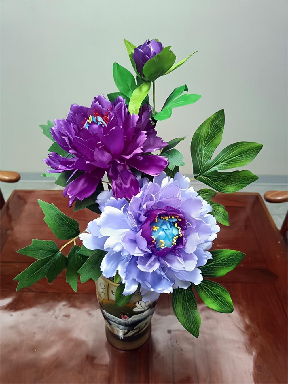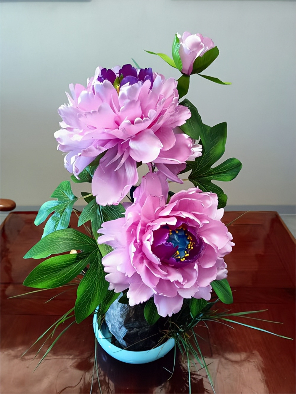 组装定型环节则充分彰显了国画章法与手工技艺的融合。齐喜恩以花艺铁丝为花杆,从花心开始,由内到外逐层粘贴花瓣,按照国画花卉的生长构图逻辑,调整每一片花瓣的角度与疏密,让花朵呈现出自然舒展、气韵生动的绽放姿态。在枝叶搭配上,他更是以国画写生为蓝本,精心设计枝叶的走向、穿插、疏密,摒弃千篇一律的呆板造型,让花、枝、叶相互映衬,浑然天成。花瓣组装完成后,再用丝带包裹花杆,制作花萼、叶片,细节之处精益求精。无论是玫瑰的娇艳、百合的淡雅,还是雏菊的灵动,都被他刻画得惟妙惟肖,兼具手工质感与书画意境。