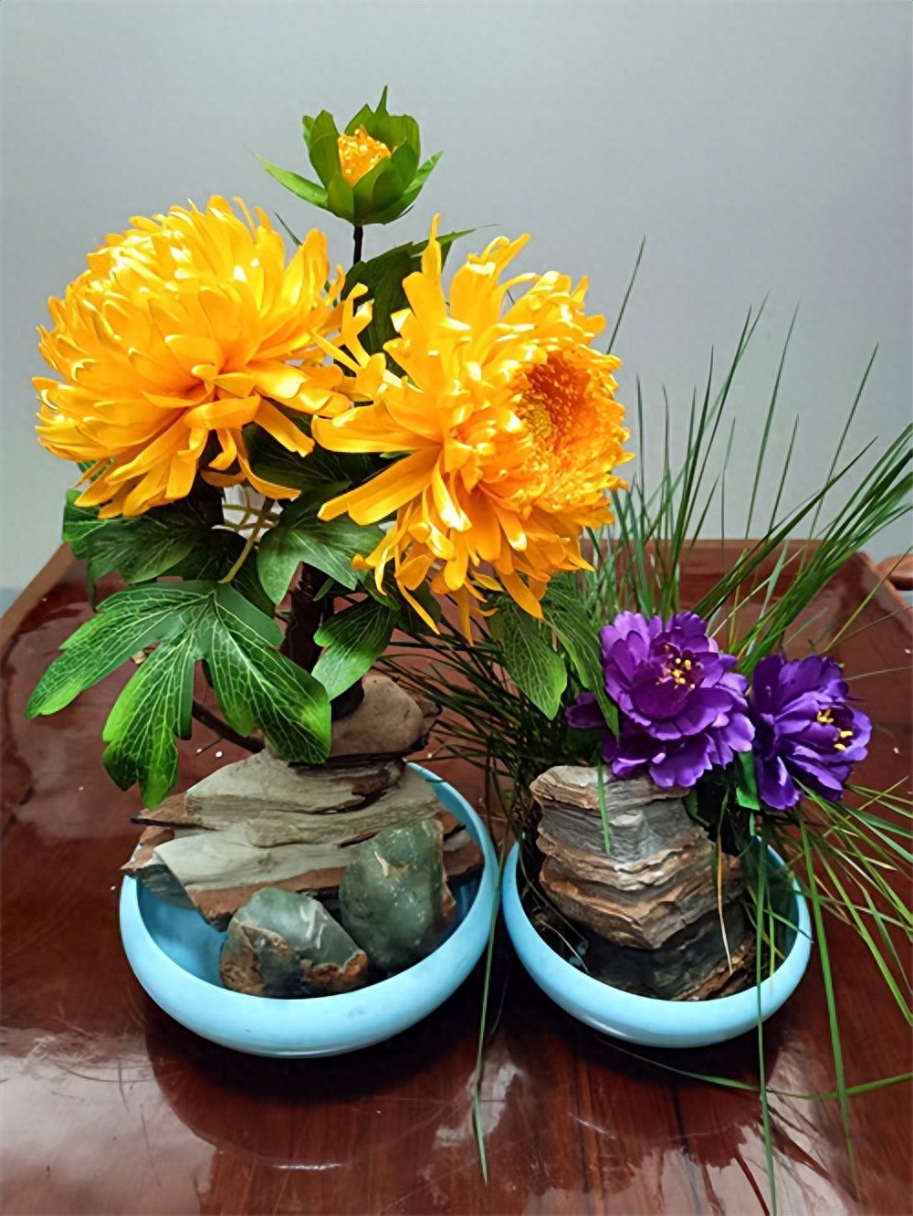 随着时代发展与生活审美变迁,纸质花材易破损、难保存、样式单一的短板逐渐凸显,渐渐濒临被淘汰的边缘。与此同时,色彩丰富、质感细腻、经久耐用的缎带、丝带材料走入大众视野,缎带丝带仿真花凭借极强的可塑性与观赏性,广泛应用于舞台设计、场景布置、环境装饰、家居工艺品摆件等诸多领域,成为现代生活与艺术装饰中不可或缺的元素。面对行业的迭代与技艺的传承困境,齐喜恩没有固守传统纸花技艺,而是凭借多年积累的花艺制作经验,结合自身国画创作的艺术积淀,大胆突破创新,将深耕半生的纸花制作艺术,完整迁移并融合到缎带丝带花的创作之中,走出了一条传统手工艺现代化、艺术化的传承之路。