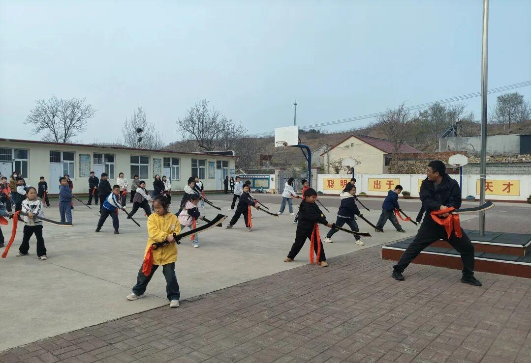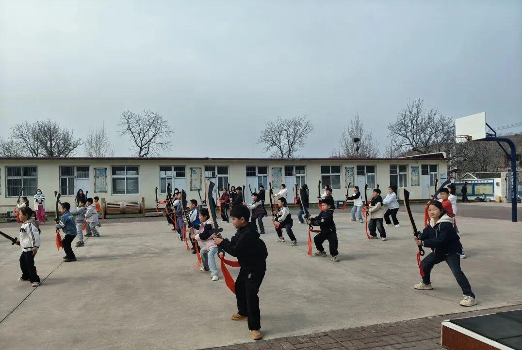 李家峪小学师生课间操演练喜峰口战役《破锋八刀》刀法