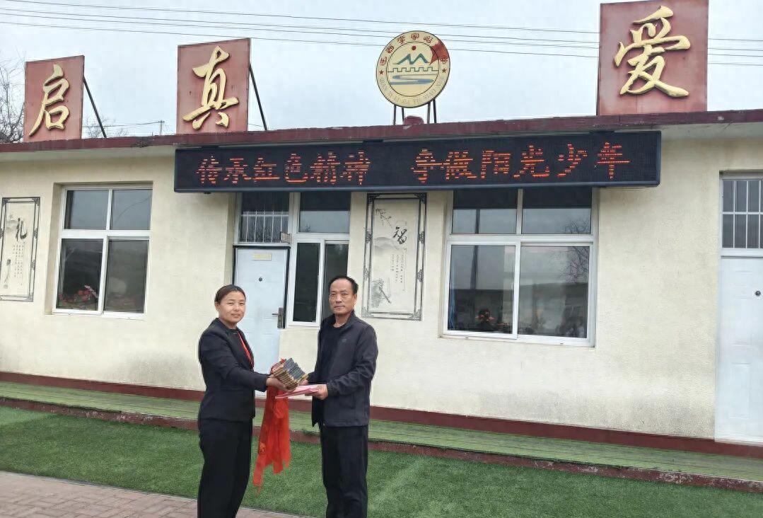 博物馆工作人员向李家峪小学捐赠29军使用的仿真大刀