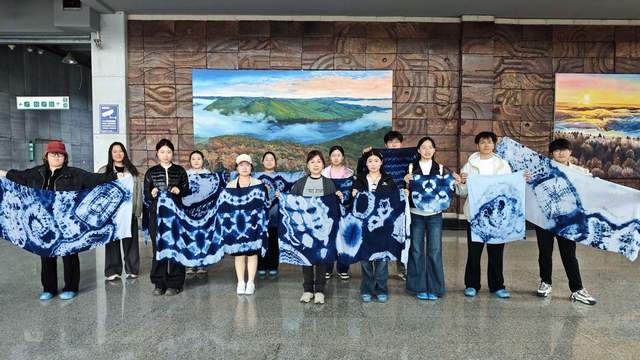 4月7日,民间传统剪纸艺术体验活动顺利开展。活动紧扣春日文化主题,推动诗词文化与非遗剪纸深度融合,非遗文化分享人结合“春”字书法结构与剪纸核心技法,融入经典诗词开展创作示范,以指尖技艺传递文字意蕴,以古典诗词涵养文化底蕴,实现非遗艺术普及与传统文化浸润双向赋能。4月16日,扎染艺术体验实践活动如期举办,以国家级非遗植物蓝染为载体,创新运用捆扎、夹染等传统技艺,指导学生创作冰雪主题蓝染围巾、环保购物袋等文创作品,将千年印染技艺与龙江地域冰雪文化有机结合,让青年学生在实践中解锁非遗文创年轻化、生活化的全新表达。